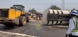 The Ghana Police Service assisted by securing the scene and preventing members of the public from siphoning fuel, while a recovery team worked to safely overturn and tow the tanker to a secure location to restore safety on the highway.